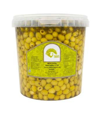 TAOUS - Olives Vertes Dénoyautées à l'Ail 7KG